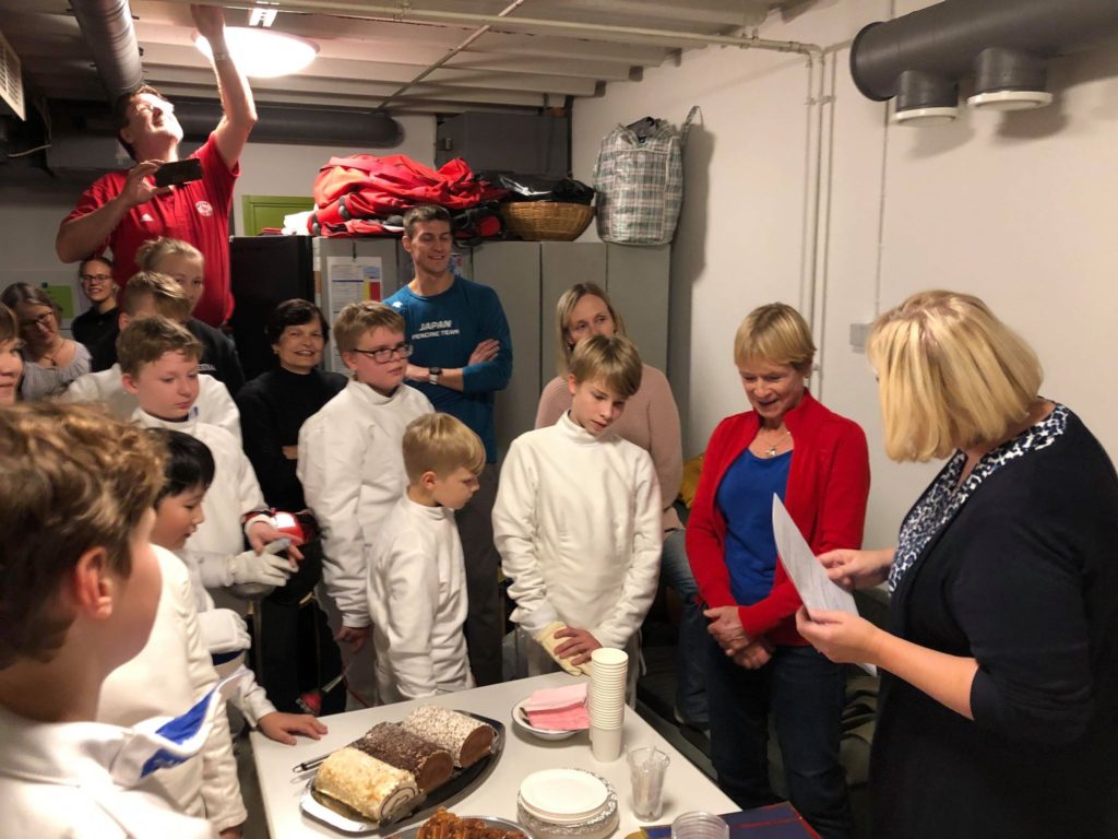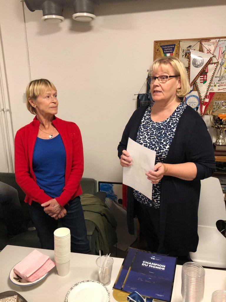 Helsingin miekkailijoiden menestystä on aina hienoa kokoontua juhlimaan! Tällä kerralla juhlimme Marja-Liisa Somerojan tuplamaailmanmestaruutta +70-sarjassa ja Niko Vuorisen pronssia Oslon sat-MC-kisassa!